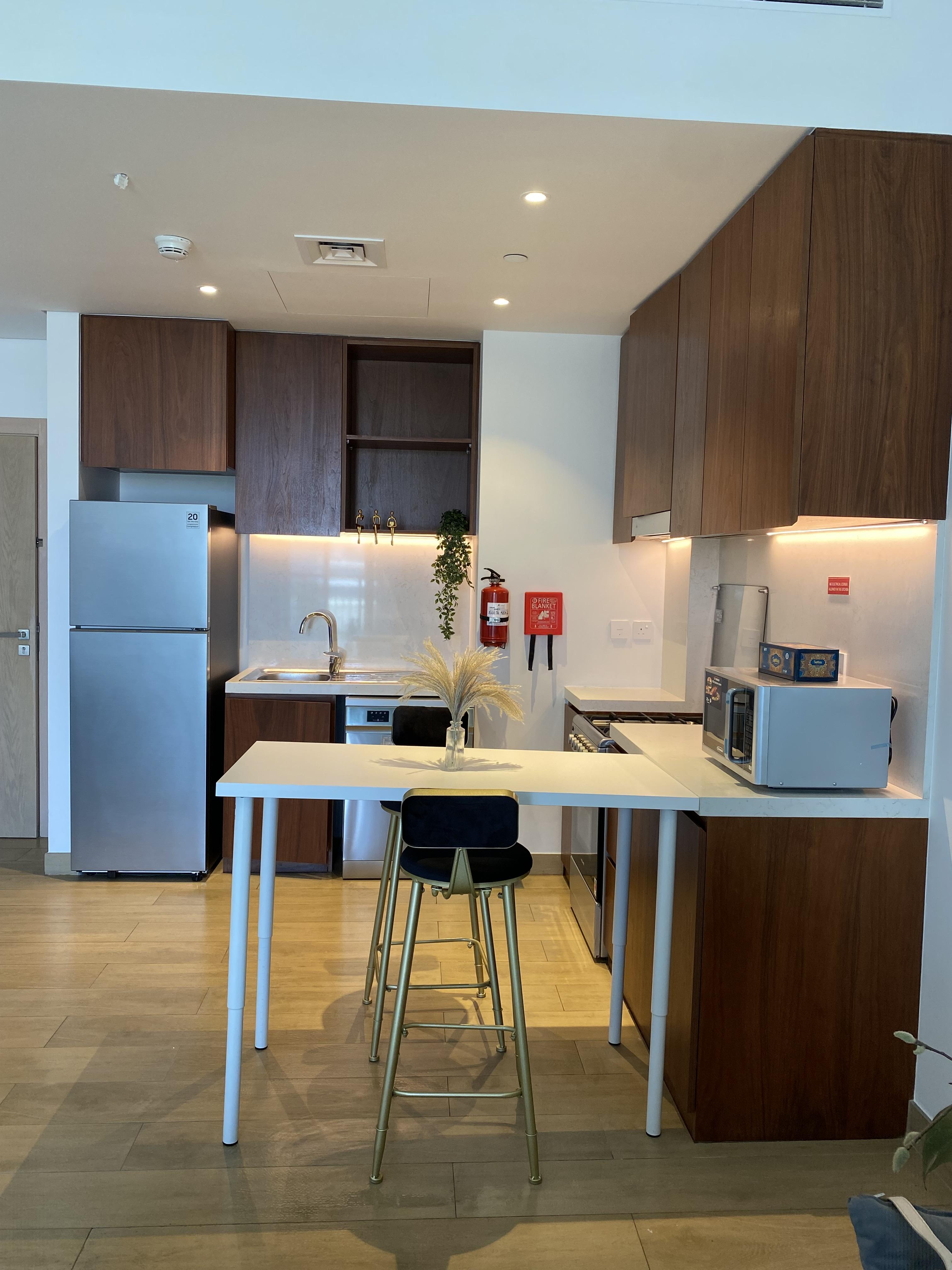 - Kitchen: Culinary enthusiasts will delight in the kitchen’s contemporary design, which includes high-end appliances, sleek cabinetry, and ample counter space that makes meal preparation a pleasure.