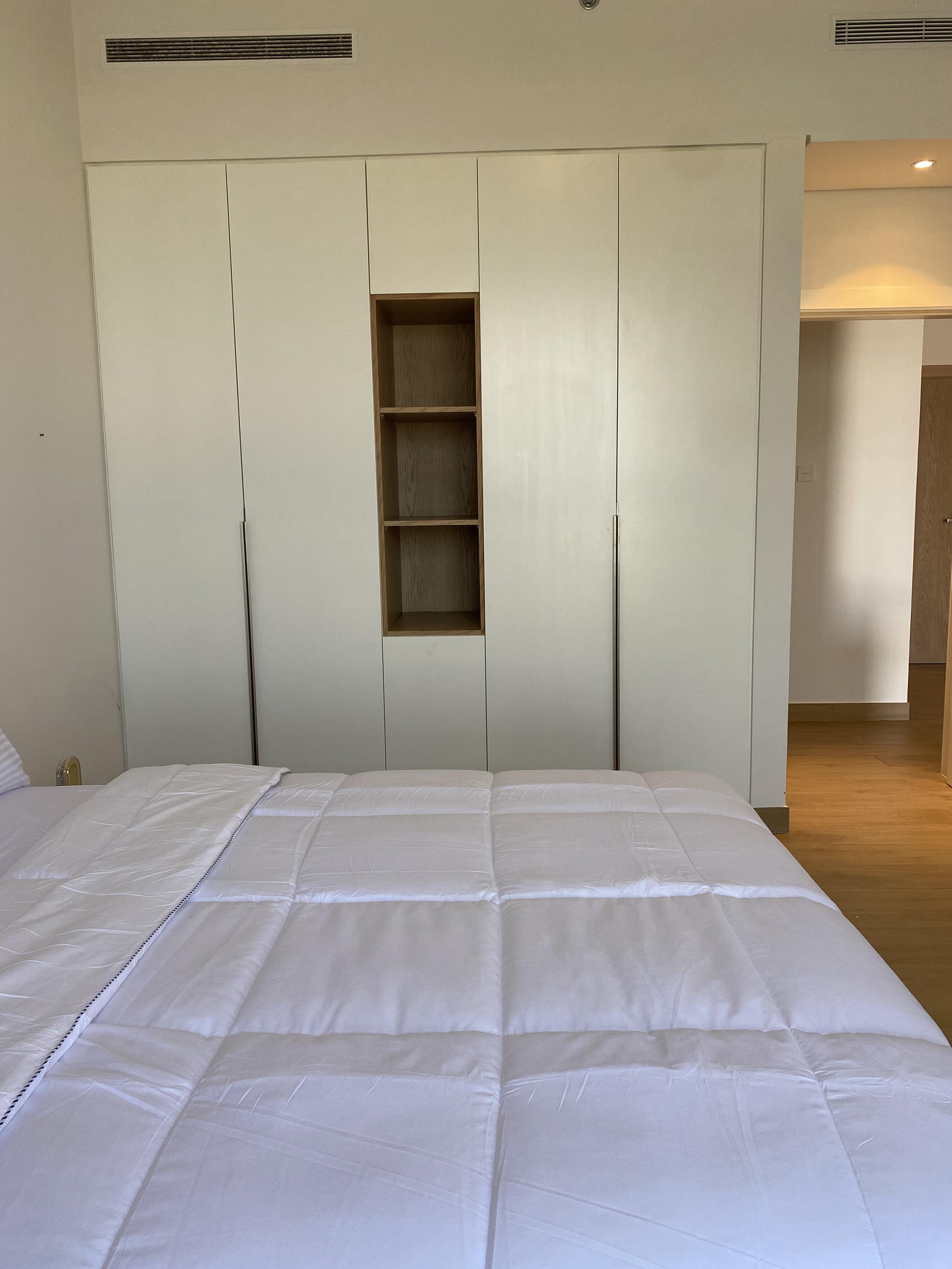 - Bedroom: This spacious bedroom is a haven of tranquility, featuring plush furnishings, a large, inviting bed, and floor-to-ceiling windows that fill the room with Dubai’s sunshine, creating a warm, welcoming atmosphere.